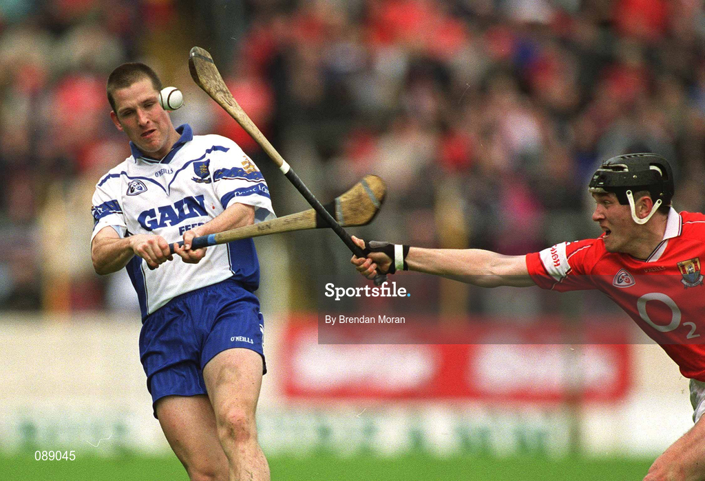 26 May 2002; Ken McGrath of Waterford in action against John Browne of Cork during the Guinness Munster Senior Hurling Championship Semi-Final match between Waterford and Cork at Semple Stadium in Thurles, Tipperary. Photo by Brendan Moran/Sportsfile