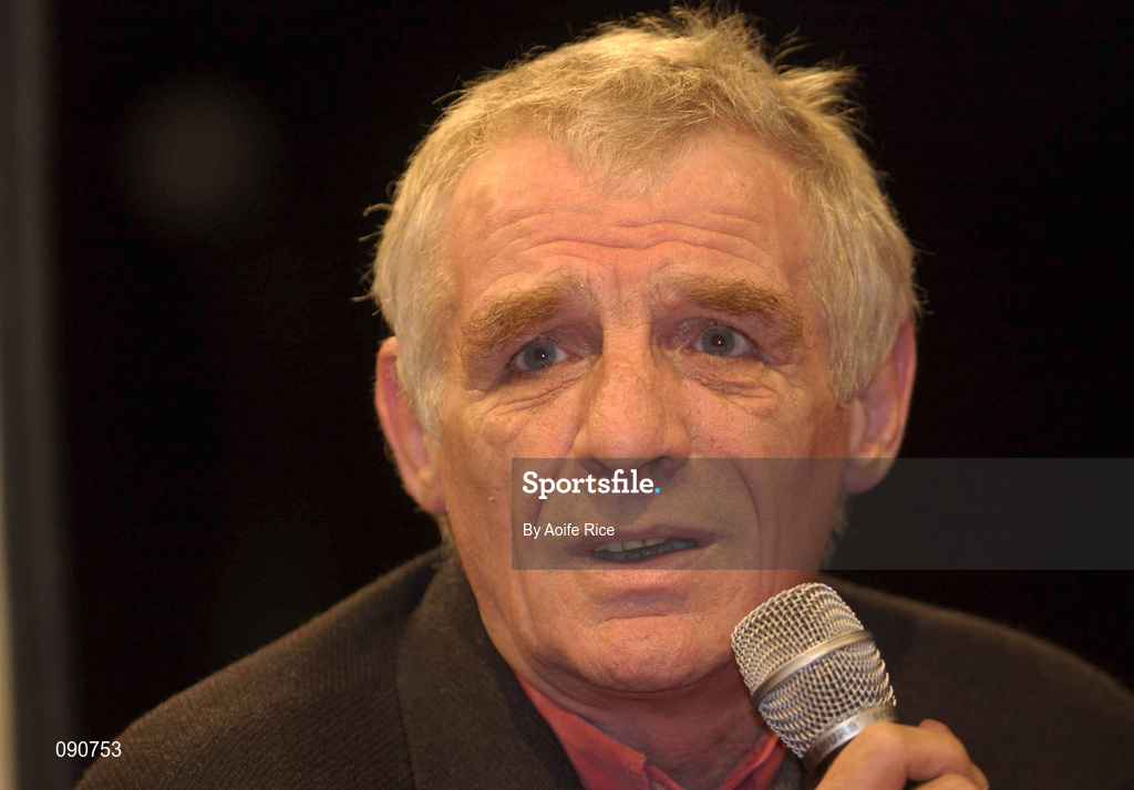 11 June 2002; Journalist and broadcaster Eamon Dunphy during at the 'Big In Japan' event at the RDS in Ballsbridge, Dublin, following the screening of the FIFA World Cup 2002 Group E match between Saudi Arabia and Republic of Ireland. Photo by Aoife Rice/Sportsfile