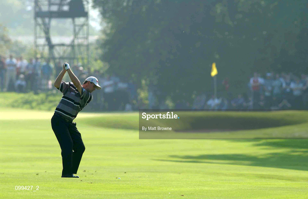 21 September 2002; Padraig Harrington plays his approach shot from the 2nd fairway during day three of the WGC-American Express Championship at Mount Juliet Golf Course in Thomastown, Kilkenny. Photo by Matt Browne/Sportsfile