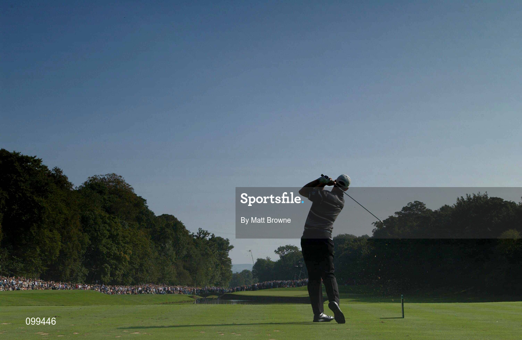 21 September 2002; Padraig Harrington watches his tee shot from the 3rd tee box during day three of the WGC-American Express Championship at Mount Juliet Golf Course in Thomastown, Kilkenny. Photo by Matt Browne/Sportsfile
