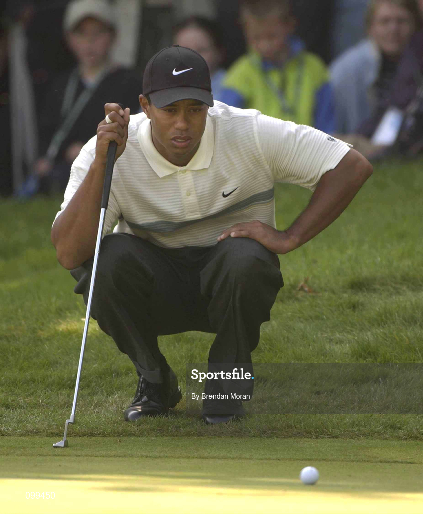 21 September 2002; Tiger Woods lines up a putt on the 1st green during day three of the WGC-American Express Championship at Mount Juliet Golf Course in Thomastown, Kilkenny. Photo by Brendan Moran/Sportsfile