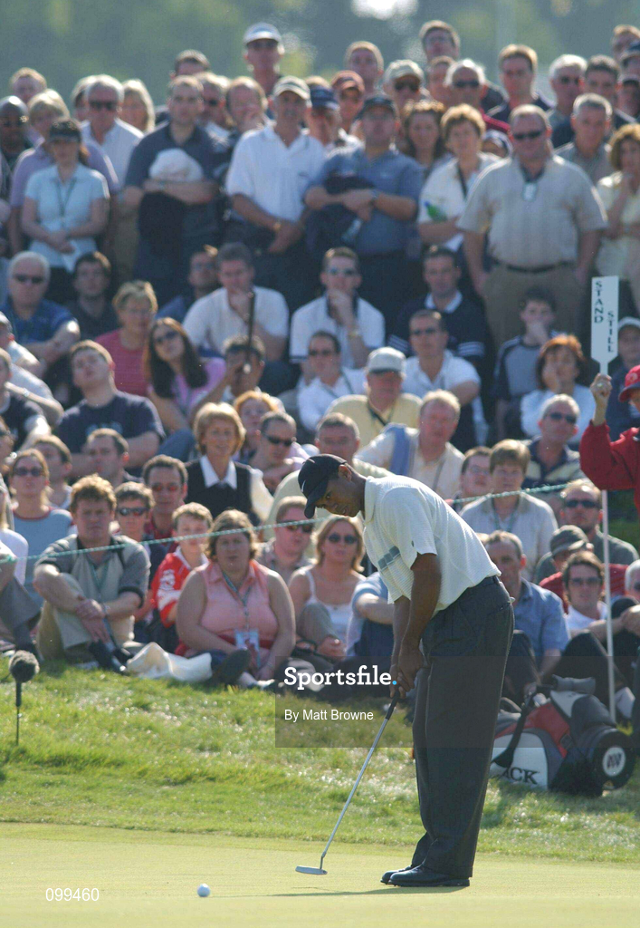 21 September 2002; Tiger Woods watches his putt on the 8th green during day three of the WGC-American Express Championship at Mount Juliet Golf Course in Thomastown, Kilkenny. Photo by Matt Browne/Sportsfile