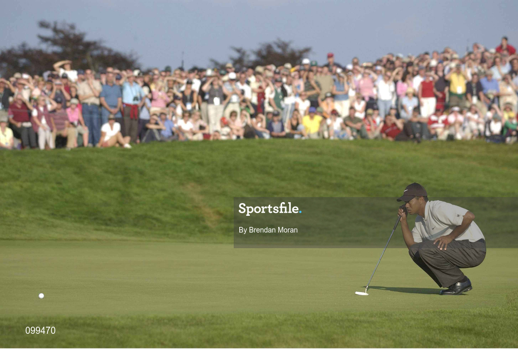 21 September 2002; Tiger Woods lines up a putt on the 18th green during day three of the WGC-American Express Championship at Mount Juliet Golf Course in Thomastown, Kilkenny. Photo by Brendan Moran/Sportsfile