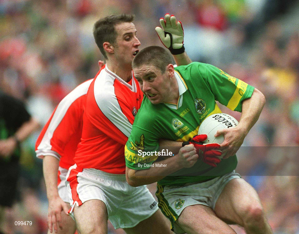 22 September 2002; Darragh O Se of Kerry in action against Barry O'Hagan of Armagh during the GAA Football All-Ireland Senior Championship Final match between match between Armagh and Kerry at Croke Park in Dublin. Photo by David Maher/Sportsfile