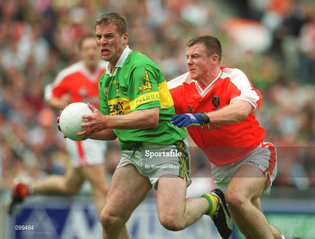 22 September 2002; Dara Ó Cinnéide of Kerry in action against Justin McNulty of Armagh during the GAA Football All-Ireland Senior Championship Final match between Armagh and Kerry at Croke Park in Dublin. Photo by Brendan Moran/Sportsfile