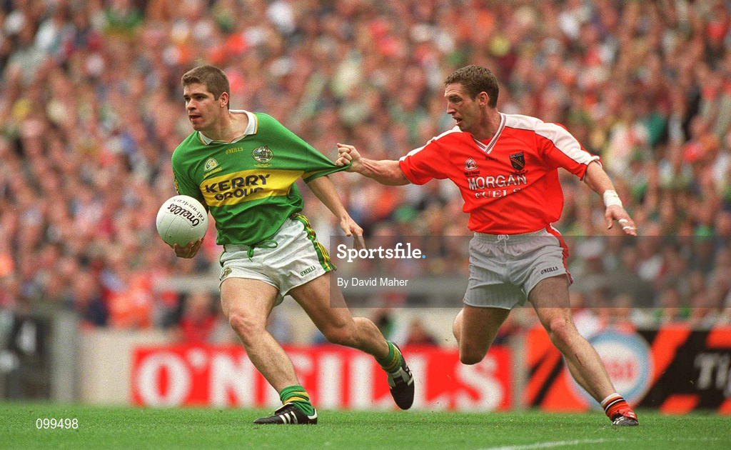 22 September 2002; Eamonn Fitzmaurice of Kerry in action against Kieran McGeeney of Armagh during the GAA Football All-Ireland Senior Championship Final match between Armagh and Kerry at Croke Park in Dublin. Photo by David Maher/Sportsfile