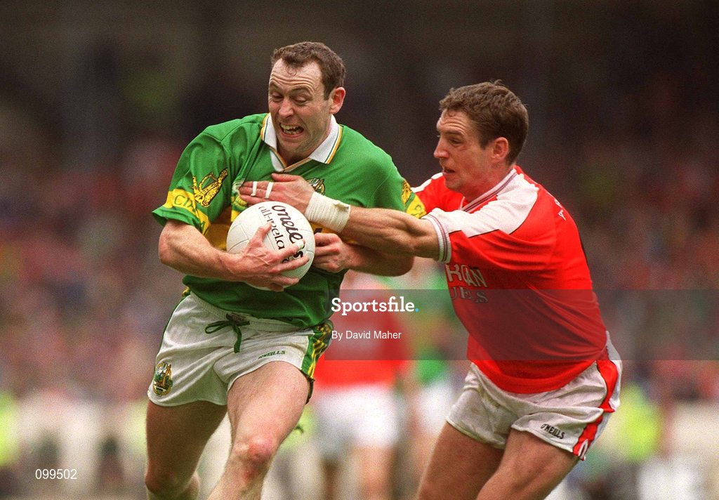 22 September 2002; Seamus Moynihan of Kerry in action against Kieran McGeeney of Armagh during the GAA Football All-Ireland Senior Championship Final match between Armagh and Kerry at Croke Park in Dublin. Photo by David Maher/Sportsfile