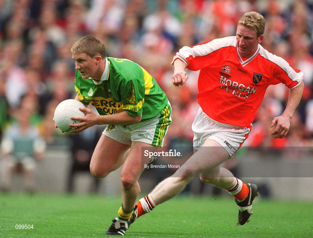 22 September 2002; Michael Francis Russell of Kerry in action against Francis Bellew of Armagh during the GAA Football All-Ireland Senior Championship Final match between Armagh and Kerry at Croke Park in Dublin. Photo by Brendan Moran/Sportsfile