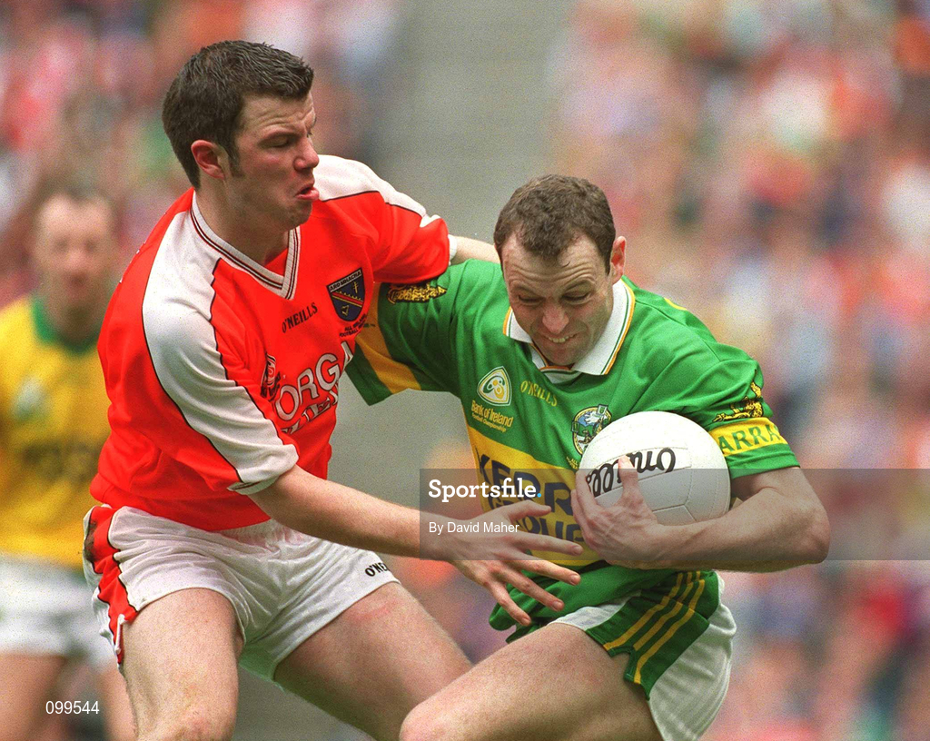 22 September 2002; Seamus Moynihan of Kerry in action against Ronan Clarke of Armagh during the GAA Football All-Ireland Senior Championship Final match between Armagh and Kerry at Croke Park in Dublin. Photo by David Maher/Sportsfile