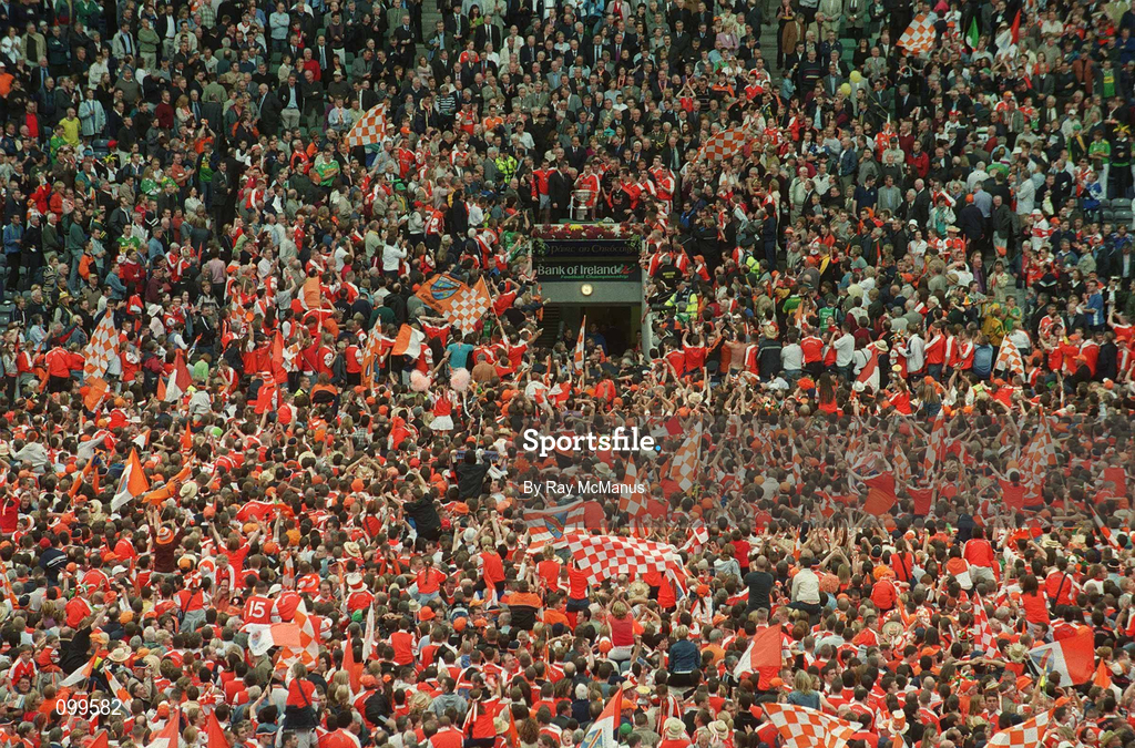 22 September 2002; Armagh supporters on the pitch following the GAA Football All-Ireland Senior Championship Final match between Armagh and Kerry at Croke Park in Dublin. Photo by Ray McManus/Sportsfile