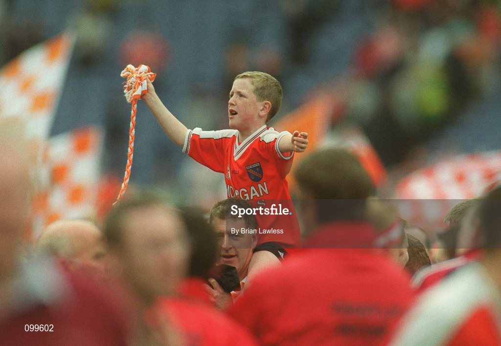 22 September 2002; An Armagh supporter celebrates after victory in the GAA Football All-Ireland Senior Championship Final match between Armagh and Kerry at Croke Park in Dublin. Photo by Brian Lawless/Sportsfile