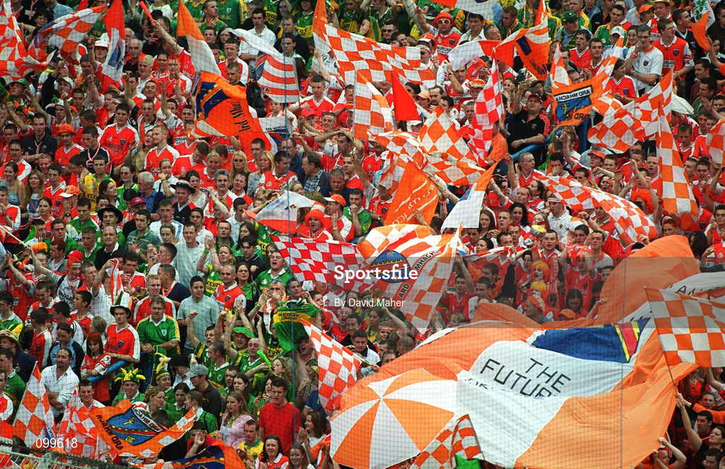 22 September 2002; Armagh and Kerry supporters on Hill 16 during the GAA Football All-Ireland Senior Championship Final match between Armagh and Kerry at Croke Park in Dublin. Photo by David Maher/Sportsfile