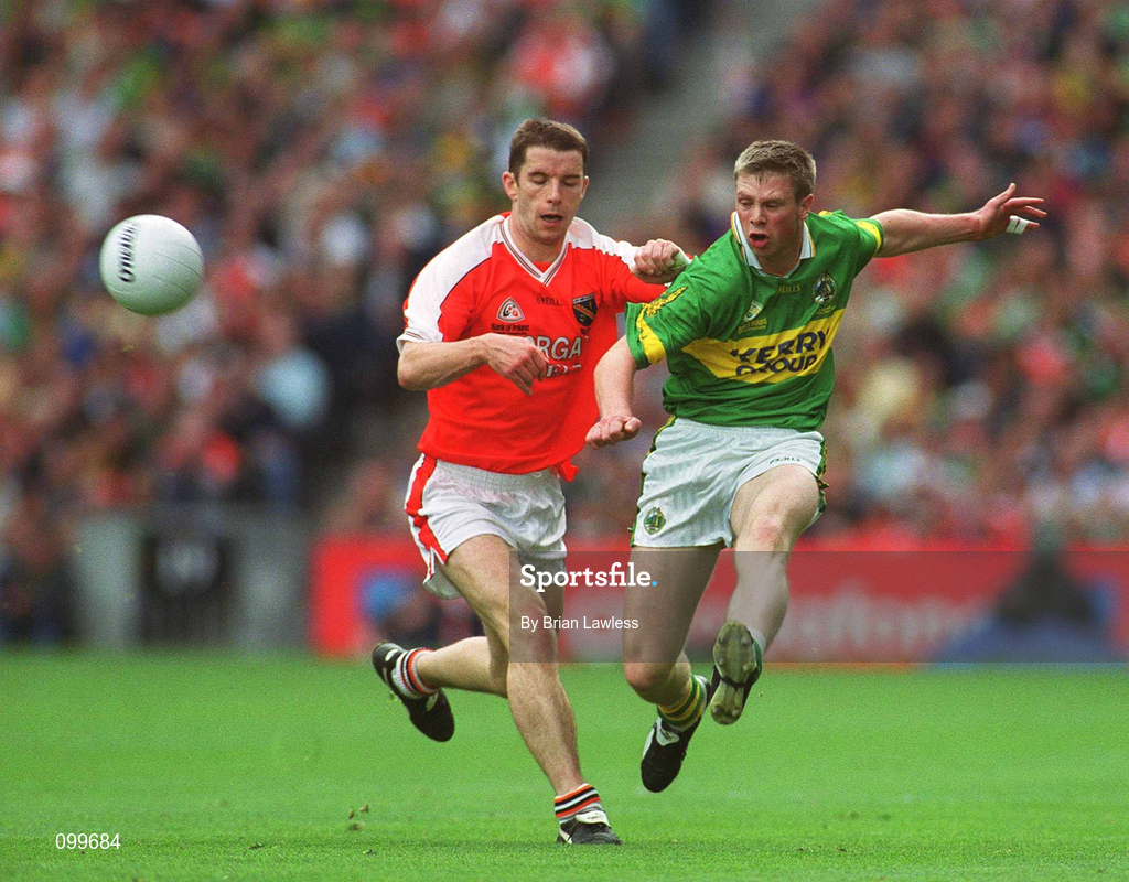 22 September 2002; Tomas O'Se of Kerry in action against Paul McGrane of Armagh during the GAA Football All-Ireland Senior Championship Final match between Armagh and Kerry at Croke Park in Dublin. Photo by Brian Lawless/Sportsfile
