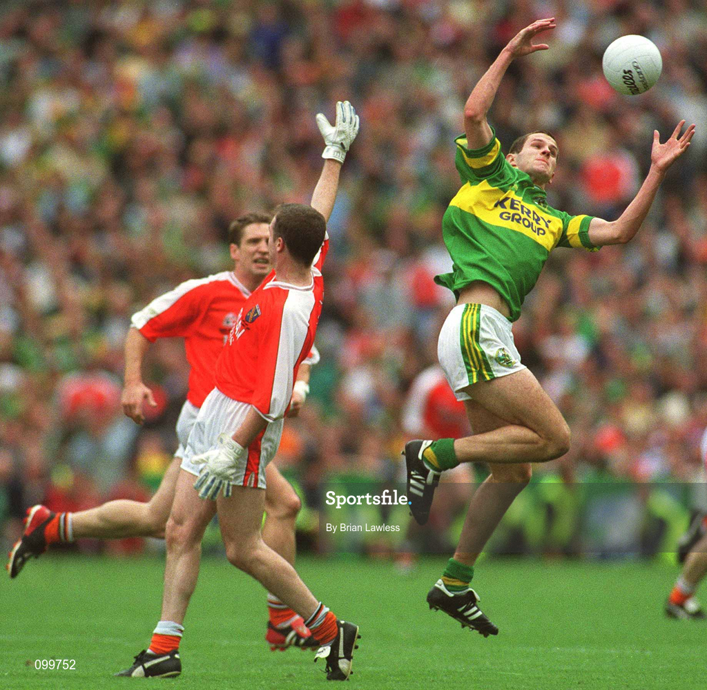 22 September 2002; Eoin Brosnan of Kerry in action against Andrew McCann of Armagh during the GAA Football All-Ireland Senior Championship Final match between Armagh and Kerry at Croke Park in Dublin. Photo by Brian Lawless/Sportsfile