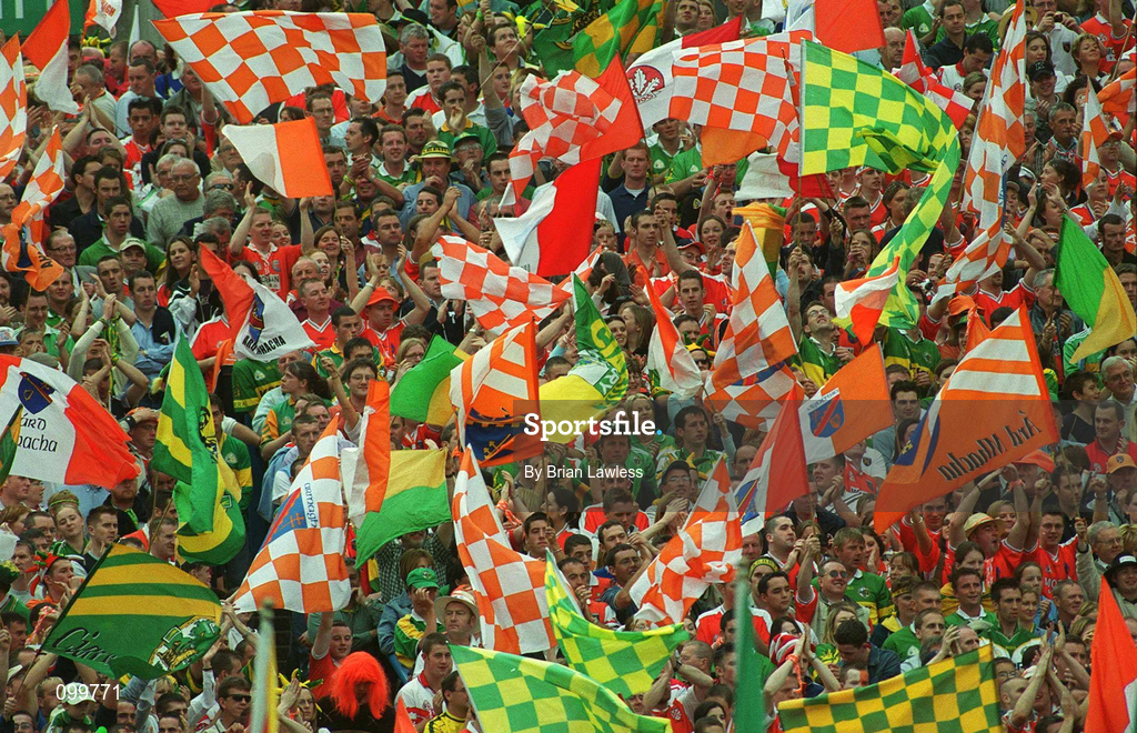 22 September 2002; Armagh and Kerry supporters on Hill 16 prior to the GAA Football All-Ireland Senior Championship Final match between Armagh and Kerry at Croke Park in Dublin. Photo by Brian Lawless/Sportsfile