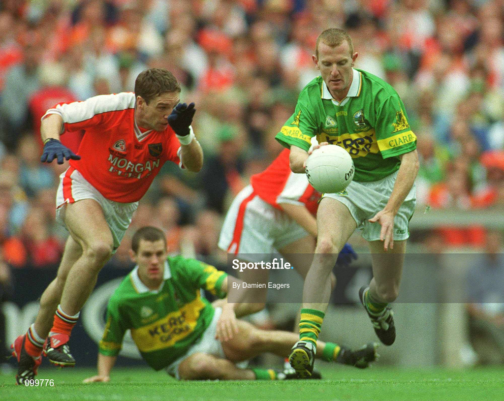 22 September 2002; Liam Hassett of Kerry in action against Kieran McGeeney of Armagh during the GAA Football All-Ireland Senior Championship Final match between Armagh and Kerry at Croke Park in Dublin. Photo by Damien Eagers/Sportsfile