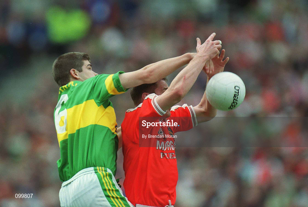 22 September 2002; Eamonn Fitzmaurice of Kerry in action against John McEntee of Armagh during the GAA Football All-Ireland Senior Championship Final match between Armagh and Kerry at Croke Park in Dublin. Photo by Brendan Moran/Sportsfile