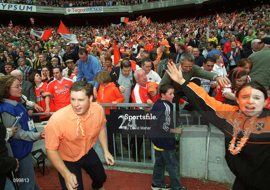 22 September 2002; Armagh supporters make their way onto the pitch after the GAA Football All-Ireland Senior Championship Final match between Armagh and Kerry at Croke Park in Dublin. Photo by David Maher/Sportsfile