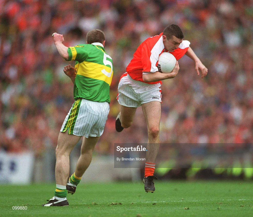 22 September 2002; Oisin McConville of Armagh in action against Tomas O Se of Kerry during the GAA Football All-Ireland Senior Championship Final match between Armagh and Kerry at Croke Park in Dublin. Photo by Brendan Moran/Sportsfile