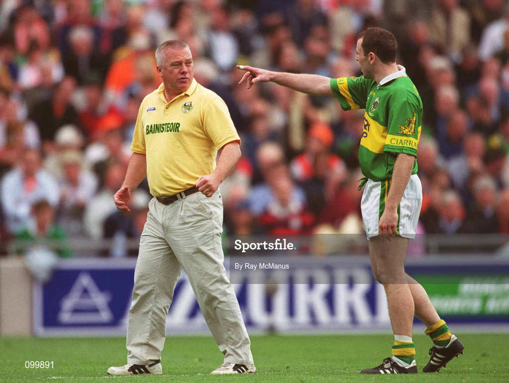 22 September 2002; Kerry manager Paidi O Se speaks to Seamus Moynihan prior to the GAA Football All-Ireland Senior Championship Final match between Armagh and Kerry at Croke Park in Dublin. Photo by Ray McManus/Sportsfile