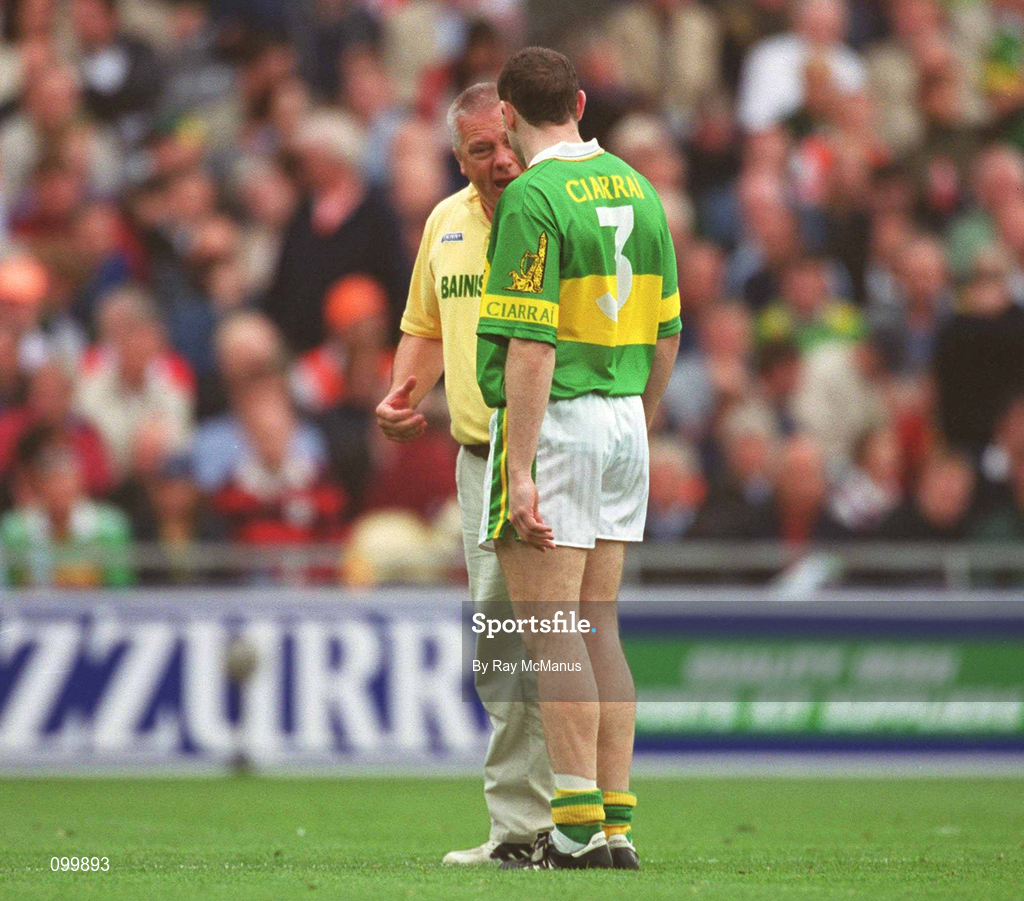 22 September 2002; Kerry manager Paidi O Se speaks to Seamus Moynihan prior to the GAA Football All-Ireland Senior Championship Final match between Armagh and Kerry at Croke Park in Dublin. Photo by Ray McManus/Sportsfile