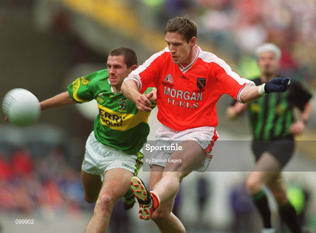 22 September 2002; Kieran McGeeney Armagh in action against Eoin Brosnan of Kerry during the GAA Football All-Ireland Senior Championship Final match between Armagh and Kerry at Croke Park in Dublin. Photo by Damien Eagers/Sportsfile