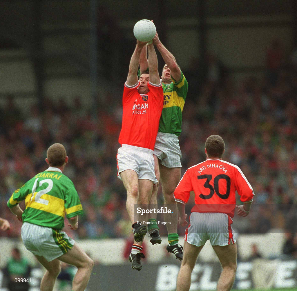 22 September 2002; Darragh O Se of Kerry in action against Paul McGrane of Armagh during the GAA Football All-Ireland Senior Championship Final match between Armagh and Kerry at Croke Park in Dublin. Photo by Damien Eagers/Sportsfile