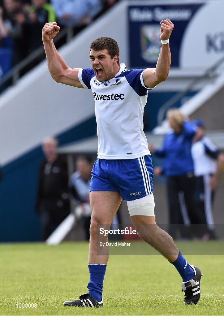 24 May 2015; Drew Wylie, Monaghan, celebrates at the end of the game. Ulster GAA Football Senior Championship Quarter-Final, Cavan v Monaghan. Kingspan Breffni Park, Cavan. Picture credit: David Maher / SPORTSFILE