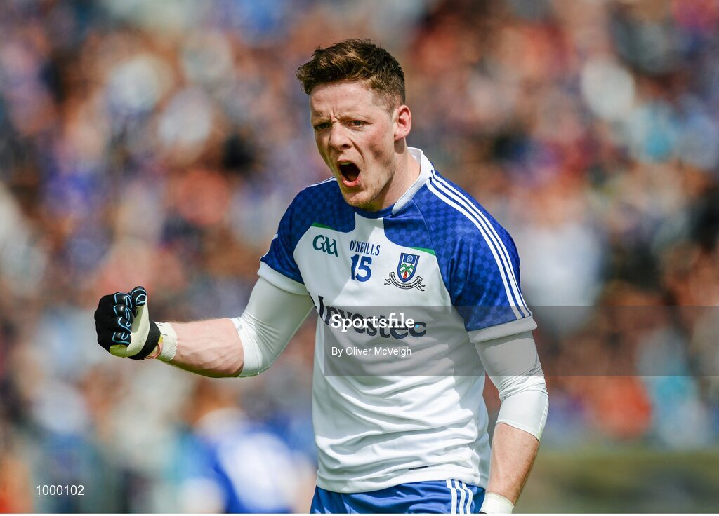 24 May 2015; Conor McManus, Monaghan, celebrates after scoring a late point. Ulster GAA Football Senior Championship Quarter-Final, Cavan v Monaghan. Kingspan Breffni Park, Cavan. Picture credit: Oliver McVeigh / SPORTSFILE