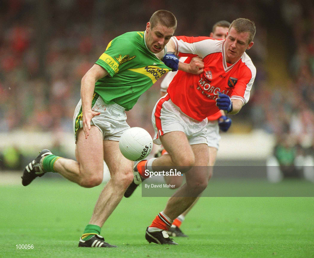 22 September 2002; Darragh O Se of Kerry in action against Justin McNulty of Armagh during the GAA Football All-Ireland Senior Championship Final match between Armagh and Kerry at Croke Park in Dublin. Photo by David Maher/Sportsfile