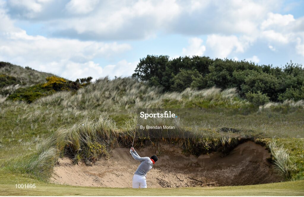 29 May 2015; Maximilian Kieffer, Germany, plays his 2nd shot from a bunker, his 3rd shot on the hole, on the 3rd fairway. Dubai Duty Free Irish Open Golf Championship 2015, Day 2. Royal County Down Golf Club, Co. Down. Picture credit: Brendan Moran / SPORTSFILE