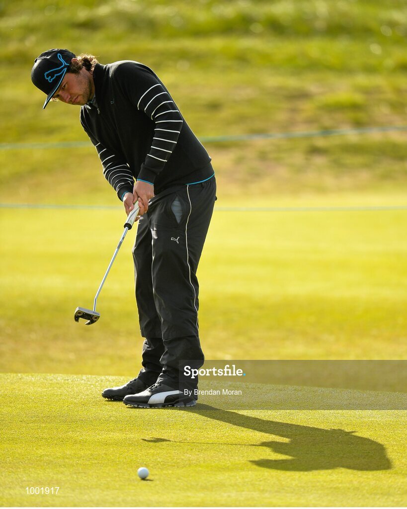 29 May 2015; Neil O'Briain, Ireland, watches his putt on the 2nd green. Dubai Duty Free Irish Open Golf Championship 2015, Day 2. Royal County Down Golf Club, Co. Down. Picture credit: Brendan Moran / SPORTSFILE