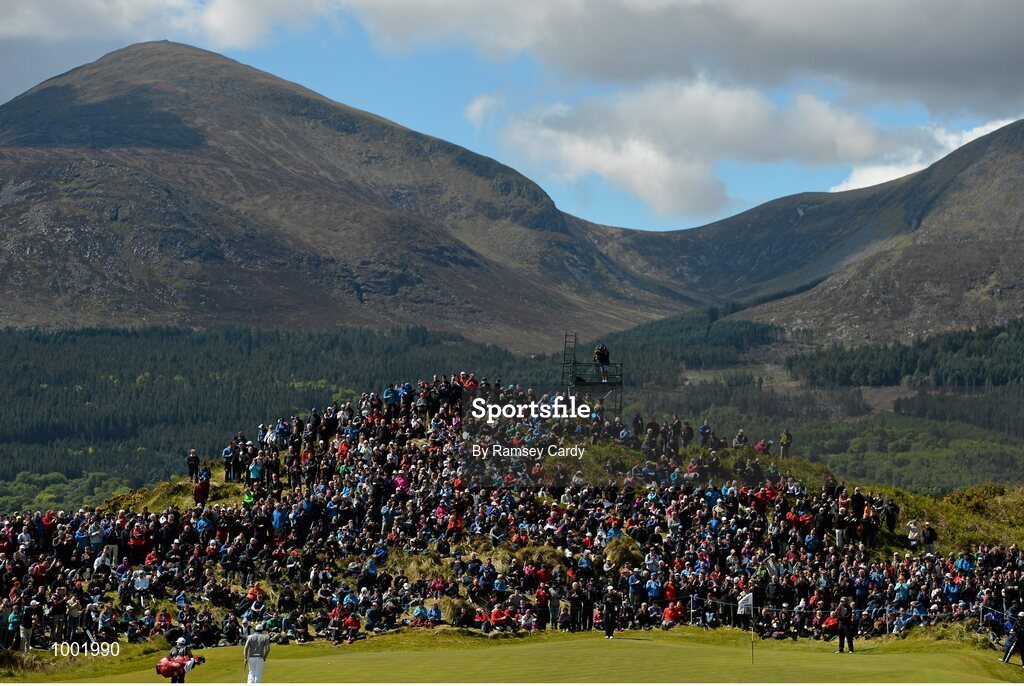 29 May 2015; Large crowds watch on as Padraig Harrington, Ireland, putts on the 5th green. Dubai Duty Free Irish Open Golf Championship 2015, Day 2. Royal County Down Golf Club, Co. Down. Picture credit: Ramsey Cardy / SPORTSFILE