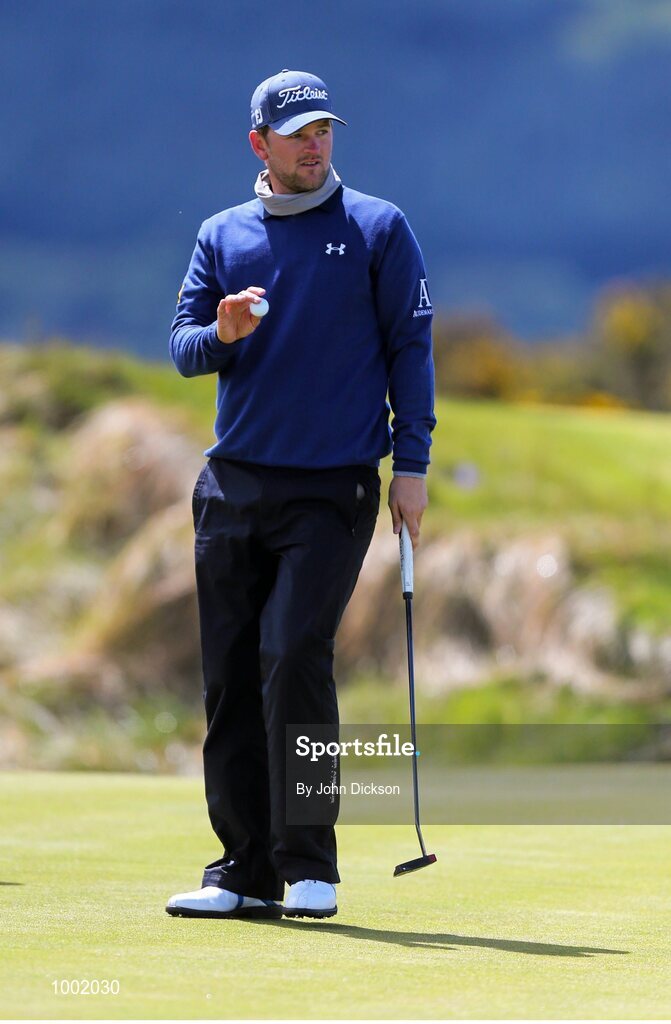29 May 2015; Bernd Wiesberger, Austria, taps in for par on the 8th green. Dubai Duty Free Irish Open Golf Championship 2015, Day 2. Royal County Down Golf Club, Co. Down. Picture credit: John Dickson / SPORTSFILE