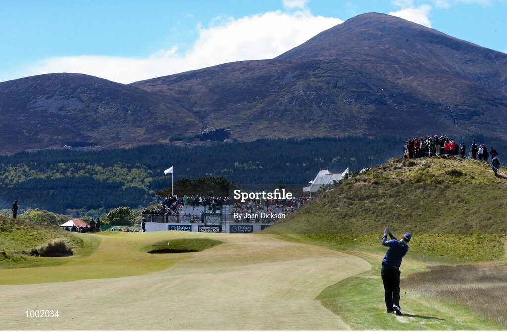 29 May 2015; Bernd Wiesberger, Austria, plays his approach into the 9th green. Dubai Duty Free Irish Open Golf Championship 2015, Day 2. Royal County Down Golf Club, Co. Down. Picture credit: John Dickson / SPORTSFILE