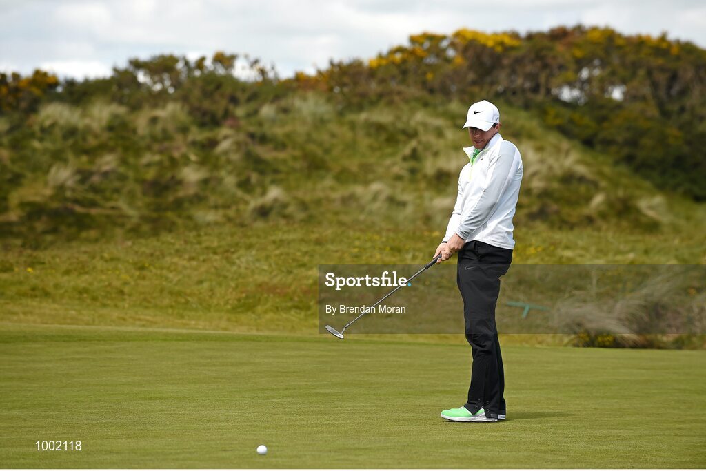 29 May 2015; Rory McIlroy, Northern Ireland, reacts to a missed putt on the 2nd green. Dubai Duty Free Irish Open Golf Championship 2015, Day 2. Royal County Down Golf Club, Co. Down. Picture credit: Brendan Moran / SPORTSFILE