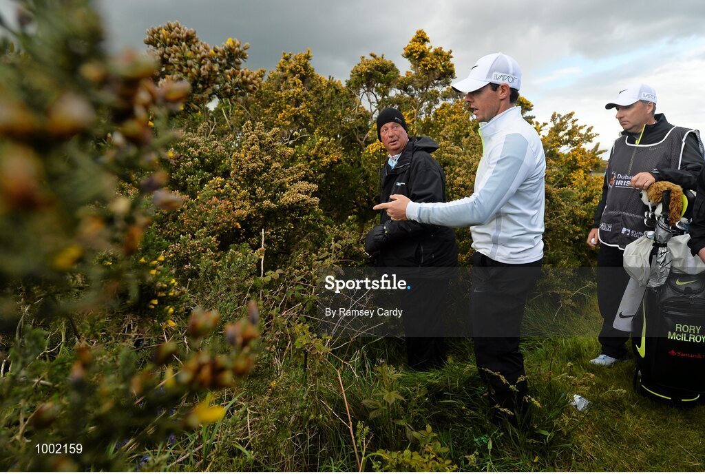 29 May 2015; Rory McIlroy, Northern Ireland, speaks with an official after his ball went off the 18th fairway. Dubai Duty Free Irish Open Golf Championship 2015, Day 2. Royal County Down Golf Club, Co. Down. Picture credit: Ramsey Cardy / SPORTSFILE