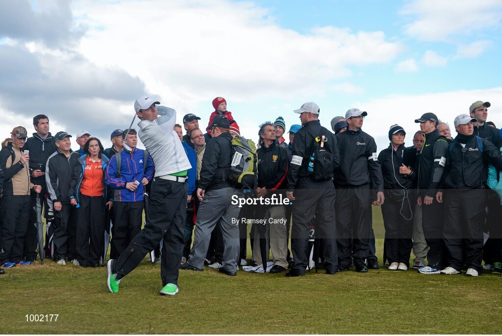 29 May 2015; Rory McIlroy, Northern Ireland, plays his 3rd shot on the 18th hole. Dubai Duty Free Irish Open Golf Championship 2015, Day 2. Royal County Down Golf Club, Co. Down. Picture credit: Ramsey Cardy / SPORTSFILE