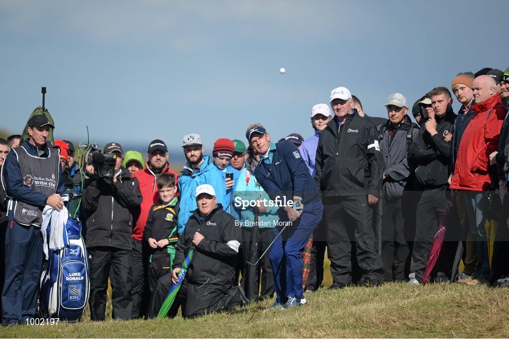 29 May 2015; Luke Donald, England, chips onto the 18th green from the rough. Dubai Duty Free Irish Open Golf Championship 2015, Day 2. Royal County Down Golf Club, Co. Down. Picture credit: Brendan Moran / SPORTSFILE