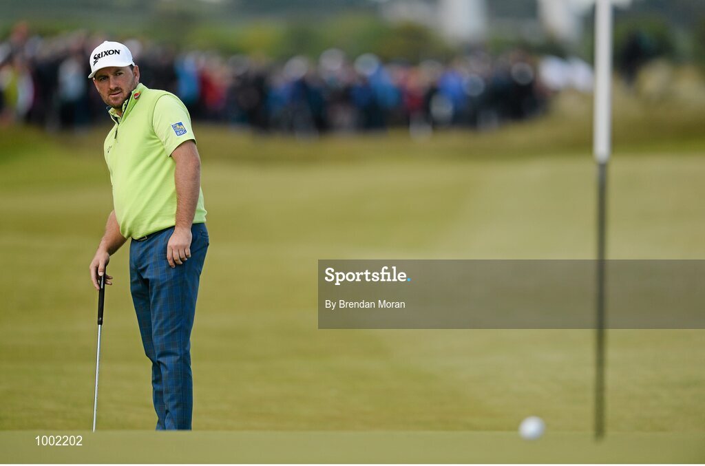 29 May 2015; Graeme McDowell, Northern Ireland, watches his putt come close to the hole on the 18th green. Dubai Duty Free Irish Open Golf Championship 2015, Day 2. Royal County Down Golf Club, Co. Down. Picture credit: Brendan Moran / SPORTSFILE