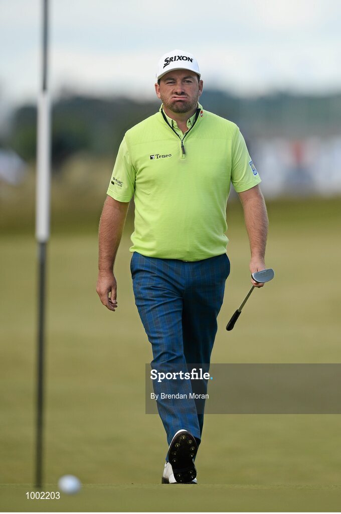 29 May 2015; Graeme McDowell, Northern Ireland, reacts after his putt came close to the hole on the 18th green. Dubai Duty Free Irish Open Golf Championship 2015, Day 2. Royal County Down Golf Club, Co. Down. Picture credit: Brendan Moran / SPORTSFILE