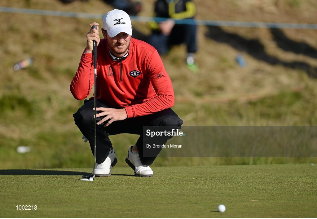 29 May 2015; Chris Wood, England, lines up a putt on the 18th green. Dubai Duty Free Irish Open Golf Championship 2015, Day 2. Royal County Down Golf Club, Co. Down. Picture credit: Brendan Moran / SPORTSFILE