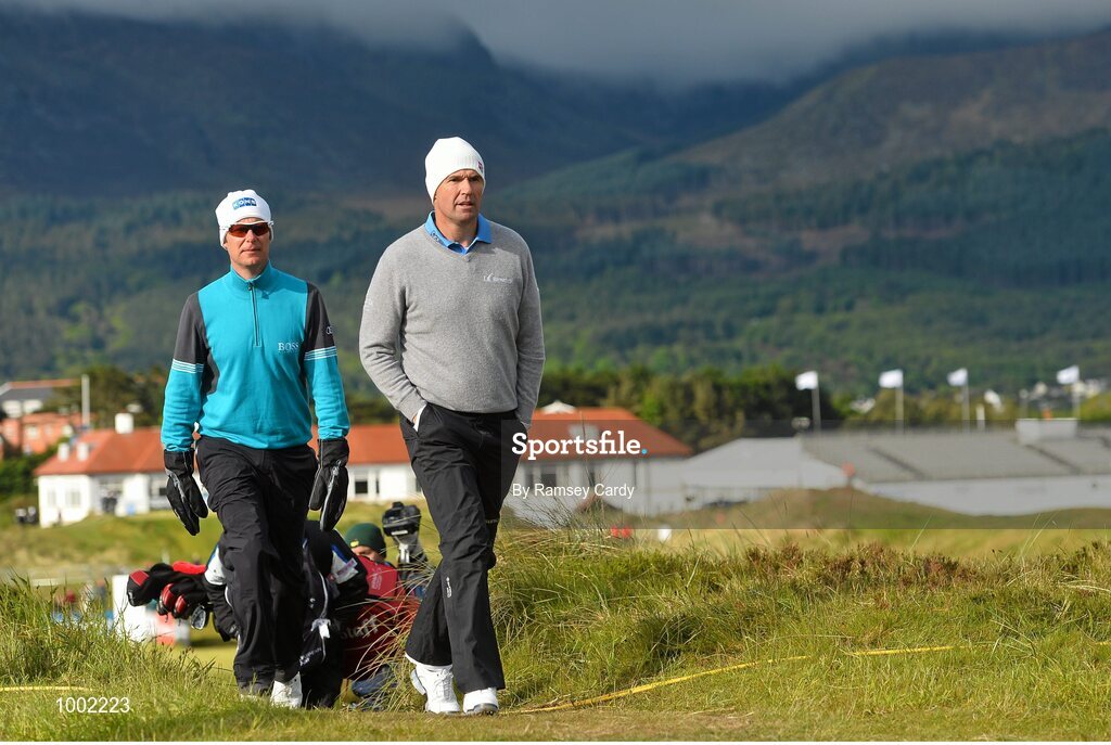 29 May 2015; Padraig Harrington, Ireland, right, and Mikko Ilonen, Finland, make their way to the 11th fairway. Dubai Duty Free Irish Open Golf Championship 2015, Day 2. Royal County Down Golf Club, Co. Down. Picture credit: Ramsey Cardy / SPORTSFILE