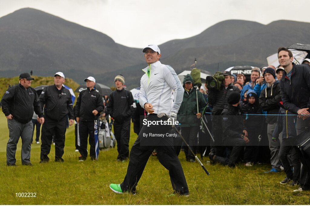 29 May 2015; Rory McIlroy, Northern Ireland, after playing his 2nd shot on the 11th hole. Dubai Duty Free Irish Open Golf Championship 2015, Day 2. Royal County Down Golf Club, Co. Down. Picture credit: Ramsey Cardy / SPORTSFILE