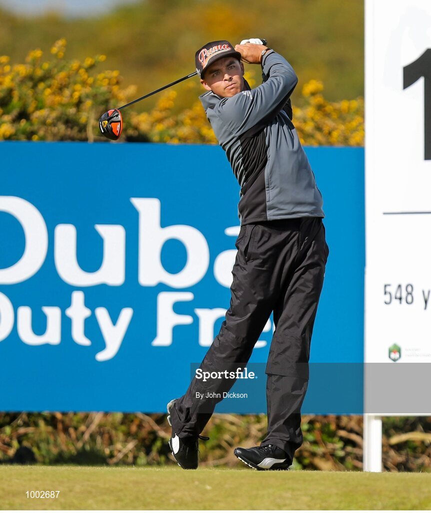 29 May 2015; Rickie Fowler, USA, tees off at the 18th hole. Dubai Duty Free Irish Open Golf Championship 2015, Day 2. Royal County Down Golf Club, Co. Down. Picture credit: John Dickson / SPORTSFILE
