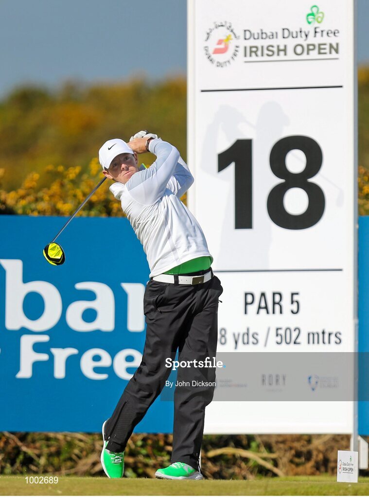 29 May 2015; Rory McIlroy, Northern Ireland, tees off at the 18th hole. Dubai Duty Free Irish Open Golf Championship 2015, Day 2. Royal County Down Golf Club, Co. Down. Picture credit: John Dickson / SPORTSFILE