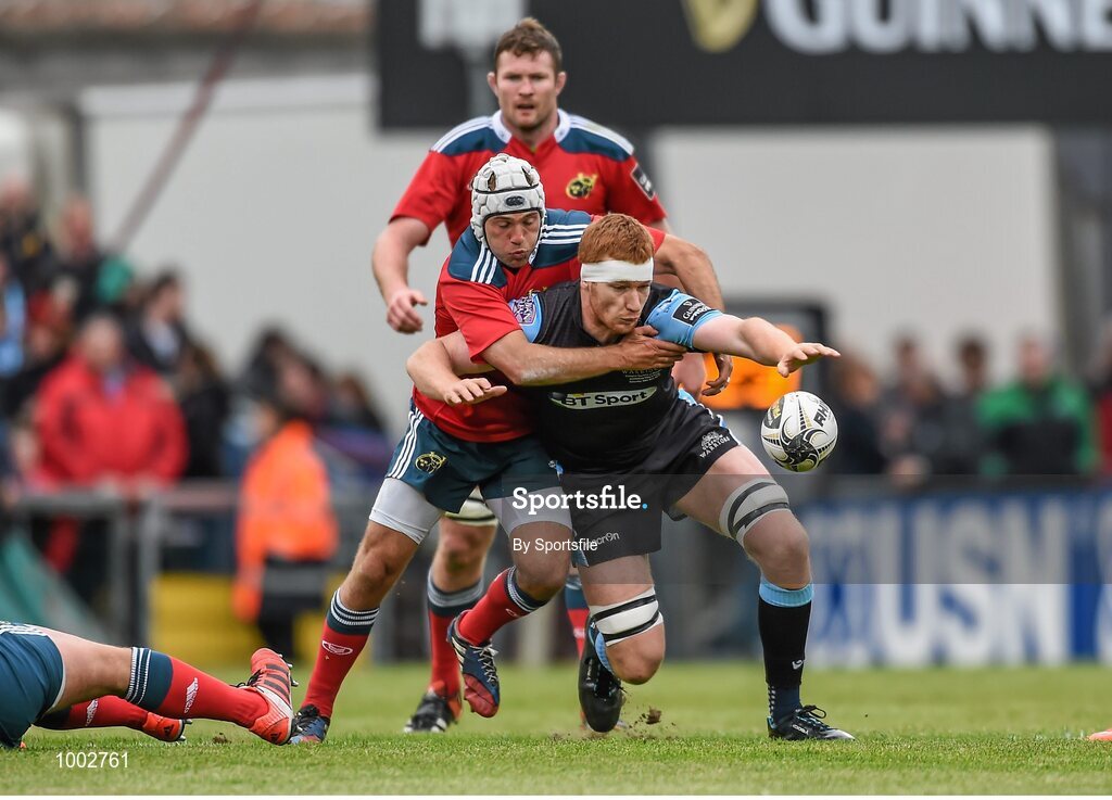 30 May 2015; Robert Harley, Glasgow Warriors, is tackled by Duncan Williams, Munster. Guinness PRO12 Final, Munster v Glasgow Warriors. Kingspan Stadium, Ravenhill Park, Belfast. Photo by Sportsfile