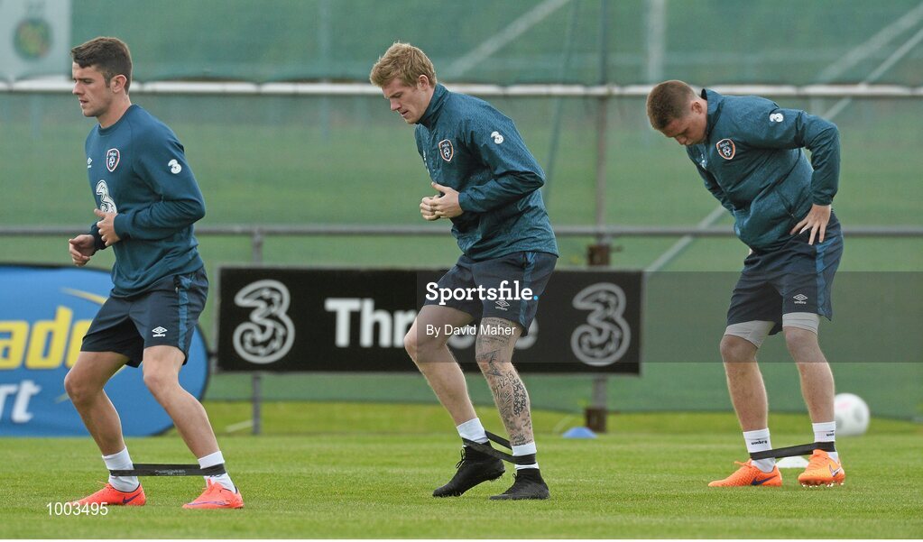 1 June 2015; Republic of Ireland players, from left, Robbie Brady, James McClean and James McCarthy during squad training. Republic of Ireland Squad Training, Gannon Park, Malahide, Co. Dublin. Picture credit: David Maher / SPORTSFILE