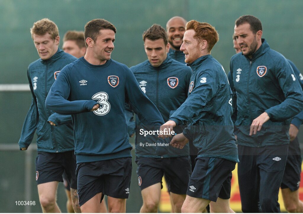 1 June 2015; Republic of Ireland's Robbie Brady, left, and Stephen Quinn in action during squad training. Republic of Ireland Squad Training, Gannon Park, Malahide, Co. Dublin. Picture credit: David Maher / SPORTSFILE