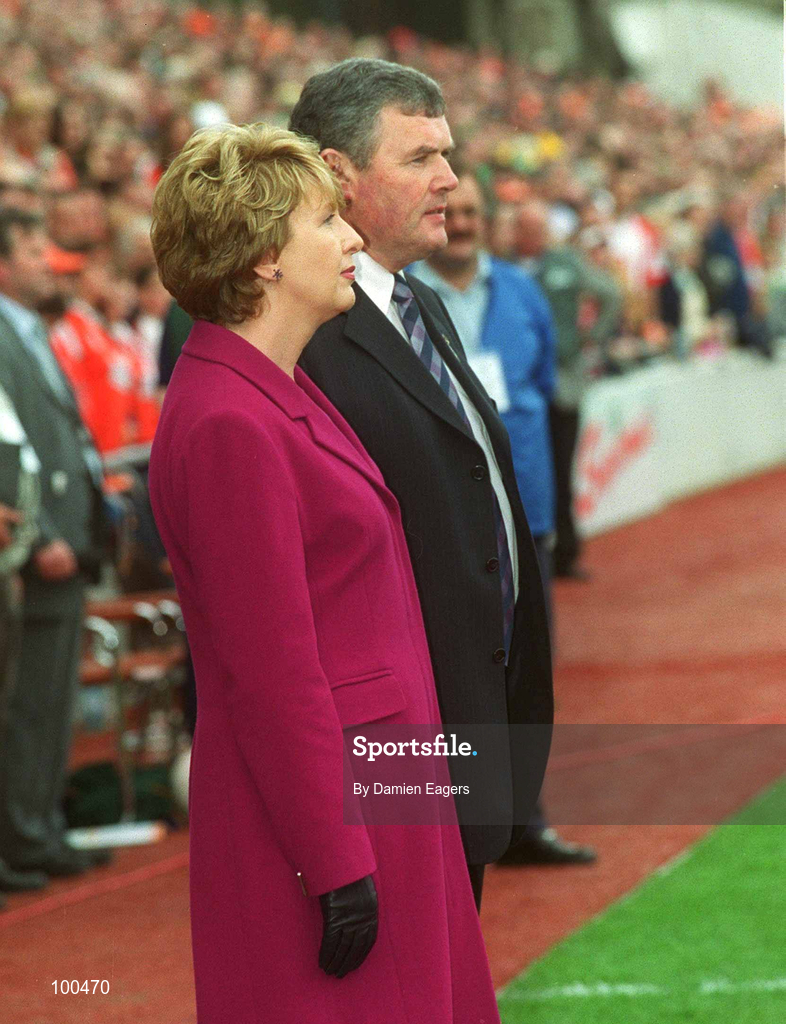 22 September 2002; Mary McAleese, President of Ireland, pictured with Sean McCague, President of the GAA, prior to the GAA Football All-Ireland Senior Championship Final match between Armagh and Kerry at Croke Park in Dublin. Photo by Damien Eagers/Sportsfile